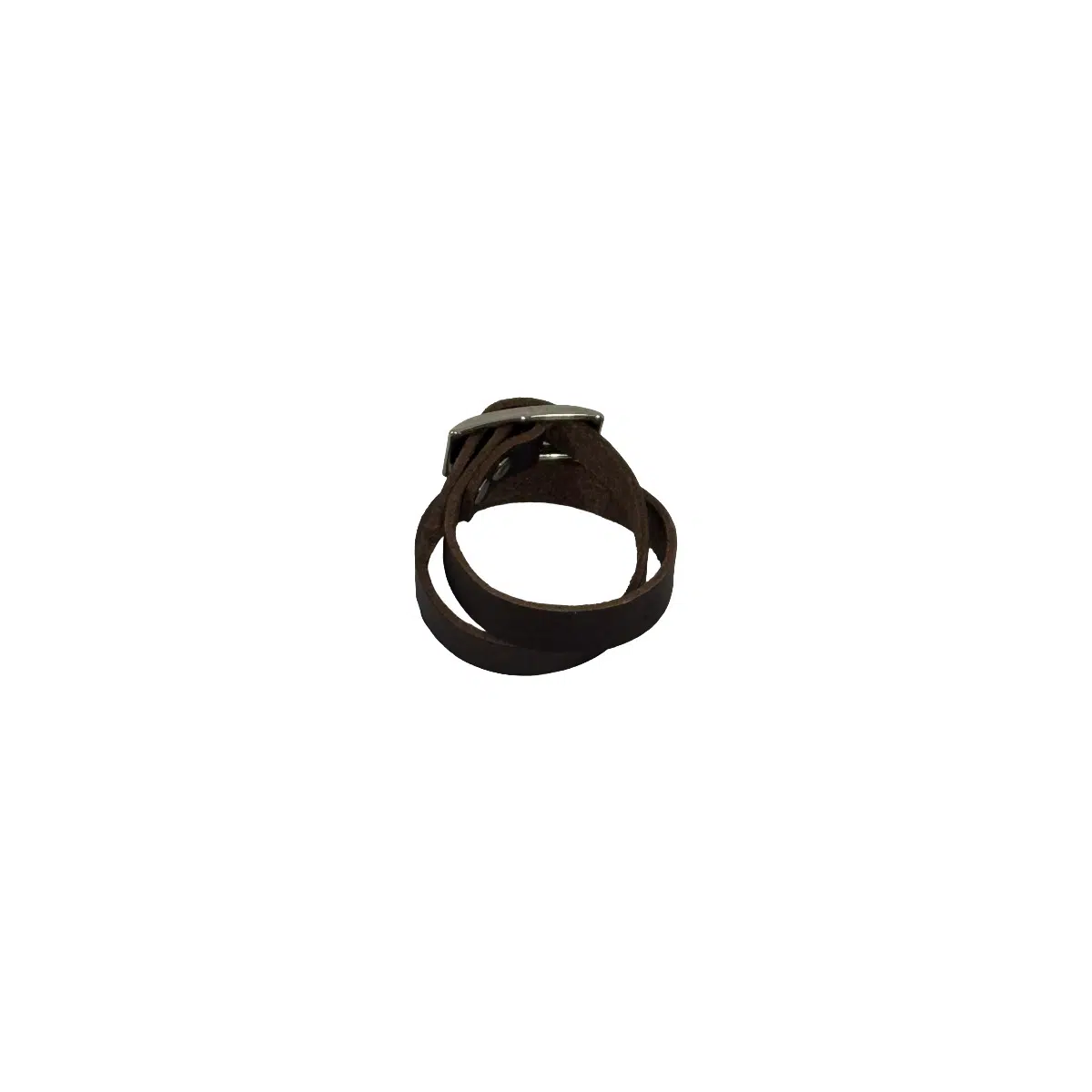 Bransoletka ze skóry w kolorze brązowym Okucia w kolorze srebrnym . Zapinana na sprzączkę. Podwójnie wiązana na ręce. Do regulacji.