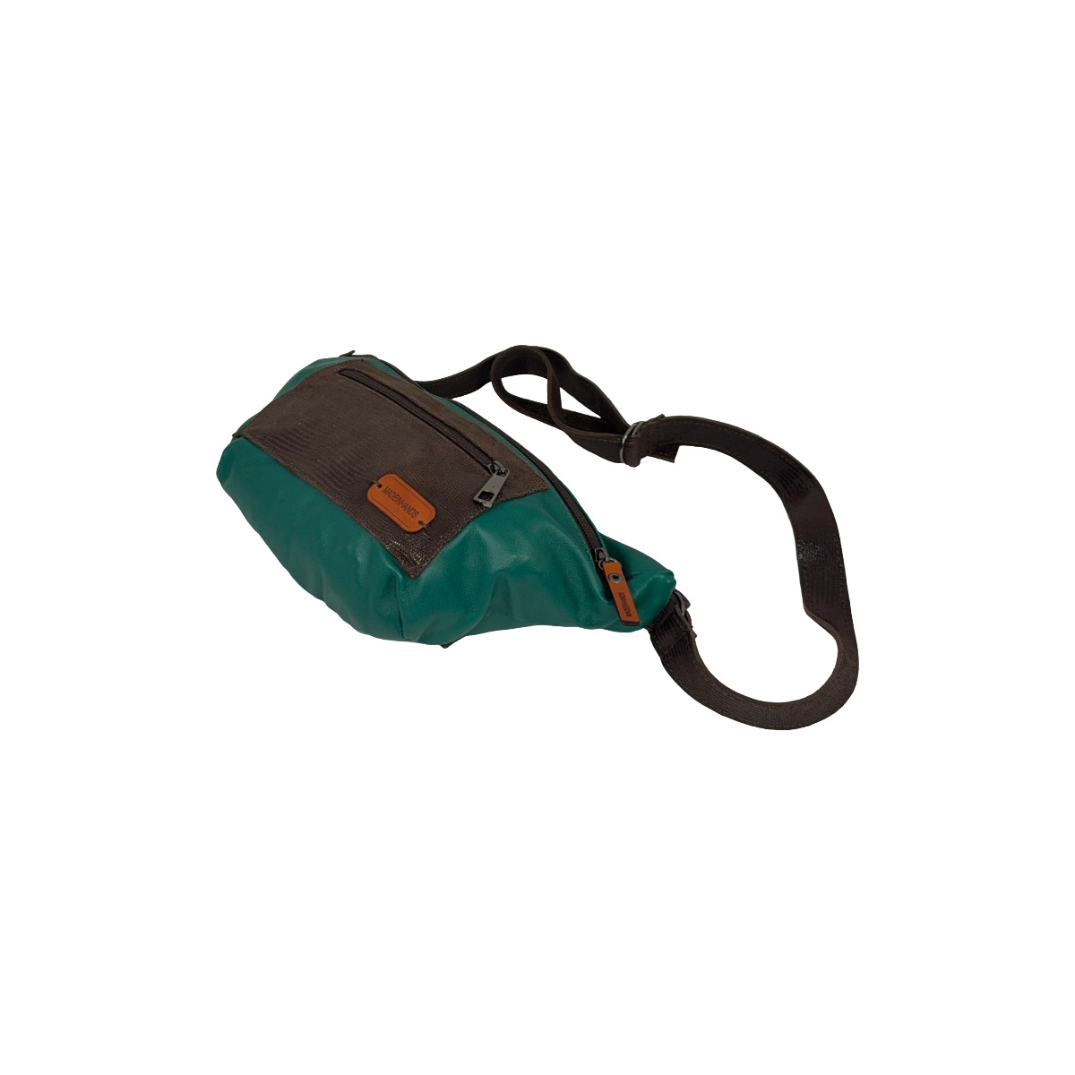 Piękna nerka w kolorze butelkowej zieleni i pięknego brązu. Wykonana w całości ze skóry. Powstała w naszej pracowni. Tylko 1 taki egzemplarz. Posiada 3 kieszenie na zamek.