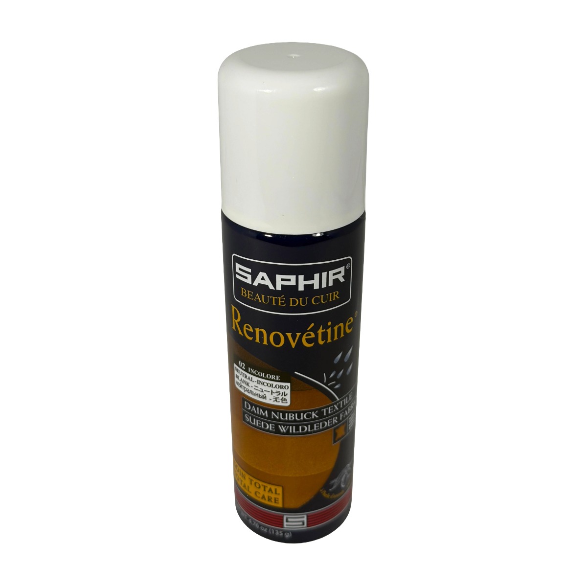 Saphir Renovétine to profesjonalny preparat w sprayu do kompleksowego odświeżania i renowacji skóry zamszowej i nubuku. Jego intensywna formuła skutecznie przywraca kolor, strukturalny wygląd i mięsistość tych delikatnych powierzchni, a jednocześnie nie obciążając ich zbędną warstwą preparatu. Dzięki temu zamsz i nubuk odzyskują estetyczny wygląd, bez efektu zbytniego wygładzania, pozostając miękkie i chłonne.